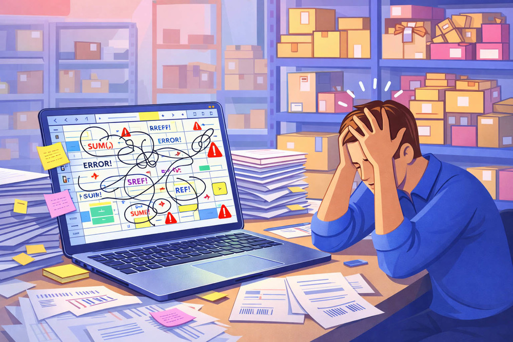 На начальном этапе Excel может успешно справляться с задачами управления запасами. Но по мере роста бизнеса, увеличения количества SKU, складов и каналов продаж ситуация меняется. Логика расчетов в Excel строится на формулах и связях между листами и файлами. Со временем такие решения разрастаются, формулы усложняются, а зависимости становятся запутанными. Даже автору файла становится сложно в них ориентироваться. Любое изменение требует ручного вмешательства и может затронуть другие части модели. В итоге система становится хрупкой и плохо масштабируется: то, что работало на небольших объемах, перестает работать при росте бизнеса.